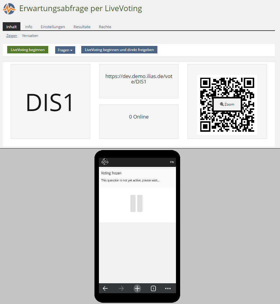- Abstimmung ohne Login: Teilnehmende müssen sich nicht zunächst in ILIAS einloggen, sondern können per Link (oder QR-Code) und PIN teilnehmen.