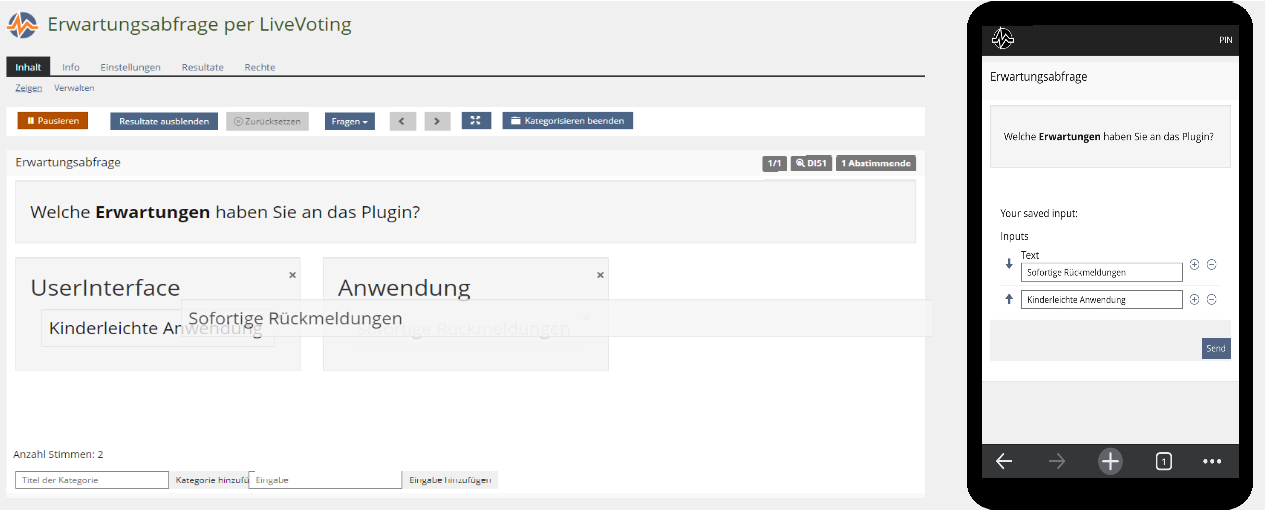 Das LiveVoting Plugin erweitert ILIAS um einen neuen Objekttypen: das LiveVoting. Damit können Umfragen mittels Pin oder QR-Code bspw. im Hörsaal zur Teilnahme geteilt und die Ergebnisse in Echtzeit angezeigt werden.